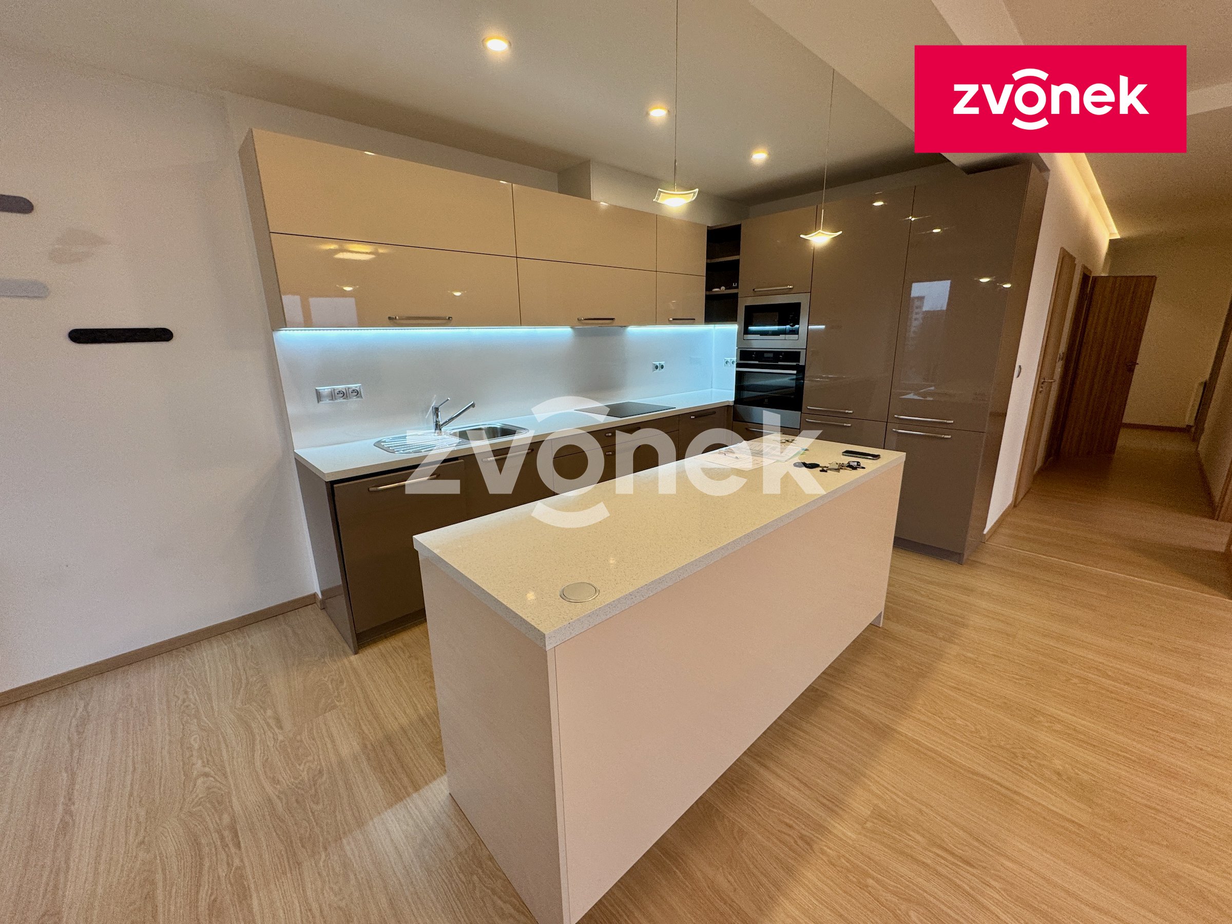 K dlouhodobému pronájmu nabízíme nadstandardní byt o dispozici 3+KK se 2 balkony, sklepem a s možností garážového stání v suterénu domu. Byt má celkovou výměru 110m2, vnitřní podlahovou plochu 92,2m2, dva balkony a nachází se ve 4. patře nového bytového domu s krásným výhledem na Zlín. Moderní byt nabízí velký obývací pokoj, prostorný kuchyňský kout s ostrůvkem a s jídelnou, dvě ložnice, chodbu s úložnými prostory a s šatnou, koupelnu se sprchovým koutem a samostatnou toaletu. Byt je zařízen moderním a vkusným nábytkem na míru a poskytuje vysoký komfort bydlení a dostatek úložných prostor. K modernímu vybavení tohoto bytu, které šetří náklady, patří rekuperace, elektricky ovládané žaluzie a moderní kuchyňské spotřebiče Electrolux. Sklep se nachází v přízemí domu. K bytu je možné pronajmout i garážové stání v suterénu domu s přístupem do bytu výtahem. Celý dům má moderní zabezpečení včetně kamerového systému. V blízkosti domu se nachází zastávka MHD, park s dětskými hřišti, sportovišti a biotopem, výhodou je kompletní občanská vybavenost i blízkost lesa. Byt bude k nastěhování od 15.2.2026 a je vhodný pro nekuřáky bez domácích mazlíčků. Výše nájmu bytu je 24.000,-Kč + záloha na energie 4.000,-Kč + elektřina bude převedena na nájemce. Nájem garážového stání je 2.000,-Kč. Majitel si vyhrazuje právo zvolit nájemce na základě jím zvolených kritérií.