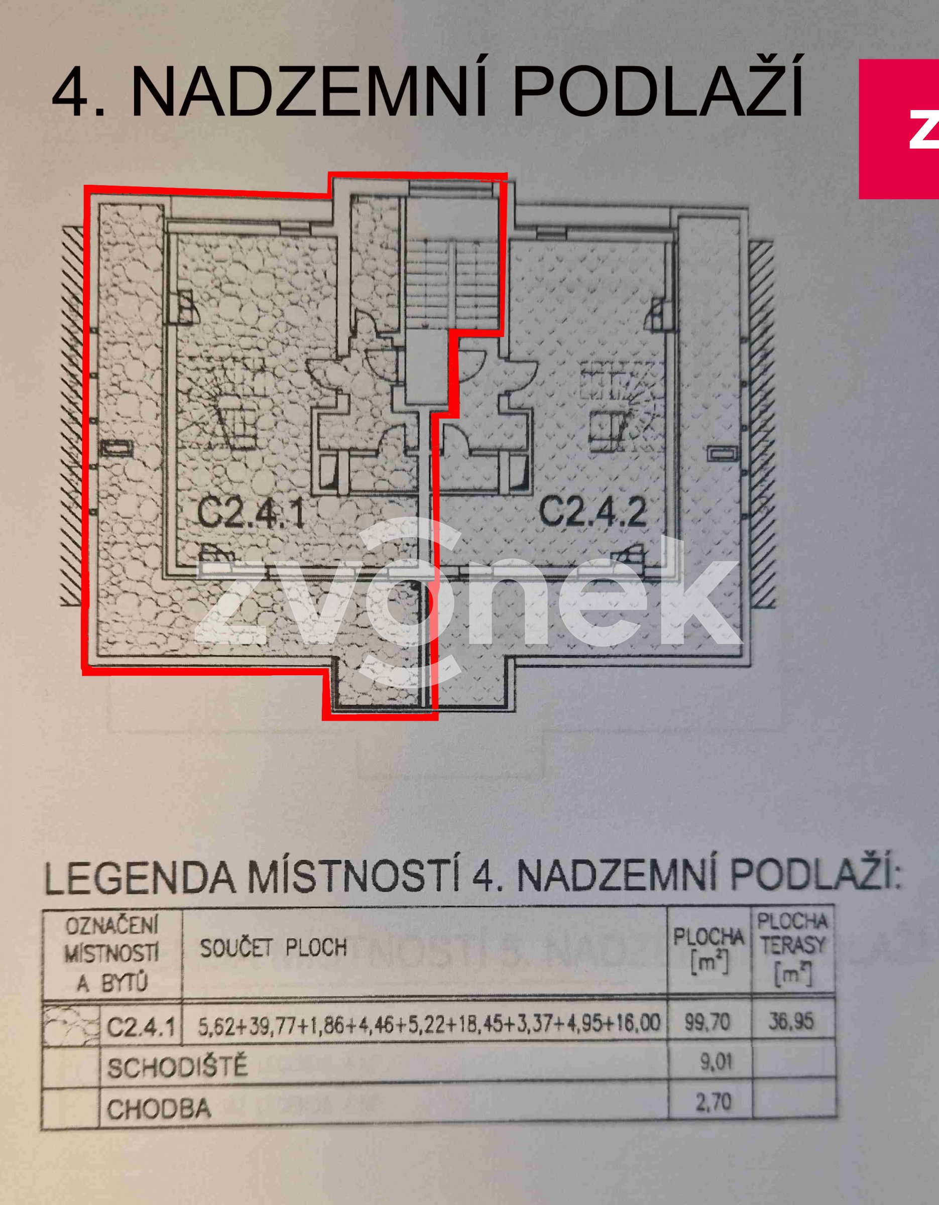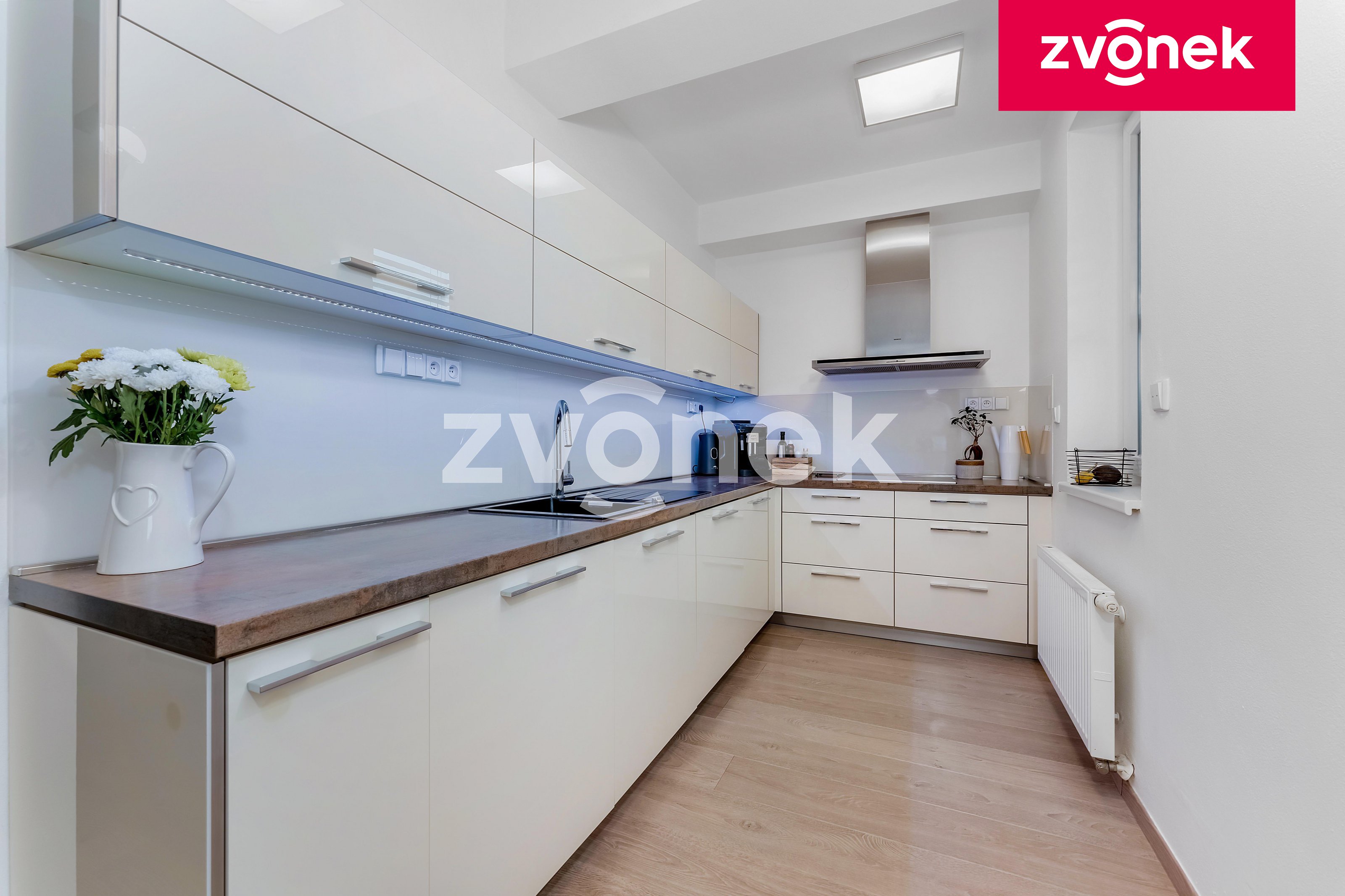 Nabízíme exkluzivně k prodeji luxusní mezonetový byt 3+kk o ploše 100 m2 v lokalitě Kasárna v blízko centra Uh. Hradiště. Byt se nachází ve 4.NP cihlového bytového domu bez výtahu. Dispozice bytu: zádveří s vestavěnými šatními skříněmi a vstupem na samostatné WC a do šatny s velkým množstvím úložných prostor. Obývací pokoj s jídelnou a kuchyní se vstupem na terasu a schodištěm do horní části bytu. Kuchyň je plně vybavena vestavěnými značkovými spotřebiči / elektrická trouba, mikrovlnná trouba, myčka na nádobí, lednice s mrazákem, digestoř|/ díky důmyslnému a promyšlenému řešení kuchyň nabízí velké množství úložných prostor jako je např. potravinová skříň s drátěným programem atd. Na rohové terase o ploše 37 m2 se nachází markýza, zahradní posezení, dětský koutek. V jídelně je umístěn velký jídelní stůl se židlemi. Stěna v jídelně a na schodišti je obložena přírodním kamenem. Z obývacího pokoje je vstup do horní části bytu schodištěm s nerezovým zábradlím. V horní části bytu se nachází chodba opět s vestavěnými skříněmi, se vstupem do ložnice se šatnou nabízející velké množství úložných prostor, dětského pokoje a koupelny se sprchovým koutem, společným WC a šatny s úložnými prostory. Všechny pokoje a místnosti jsou vybaveny na zakázku vyrobeným značkovým nábytkem a skříněmi, tyto jsou součástí ceny bytu. Ve všech oknech jsou umístěny elektricky ovládané venkovní protisluneční žaluzie. Byt je ve velmi udržovaném stavu odpovídající téměř novostavbě. K bytu náleží prostorná sklepní kóje o ploše 33,5 m2. Byt se nachází ve velmi klidné části bytové zástavby v lokalitě Kasárna. V blízkosti bytu se nachází, obchodní centrum, městské sportoviště, cyklostezka, dětské hřiště, škola, školka, aqua park, zimní stadion. Centrum města je vzdáleno do 8 min. pohodlnou chůzí. V bezprostřední blízkosti bytového domu je dostatek parkovacích míst. Byt je volný ihned.